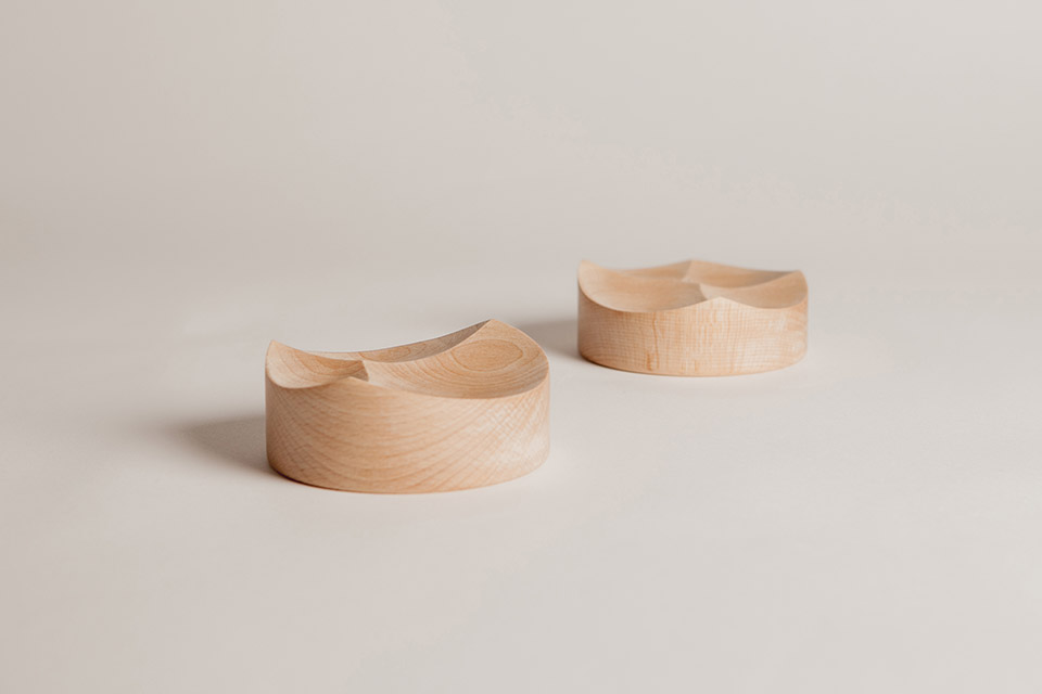 由传统雕塑的加和减,变成组构和结合,强调的是空间中的势,而不是传统雕塑着重的体积量感。平坦、光滑与中间木质部分的皱褶、粗糙形成对比反差。压力和强制力挤迫的皱褶是此件雕塑刻画的重点,而粗糙感则来自缠绕木块的绳子。