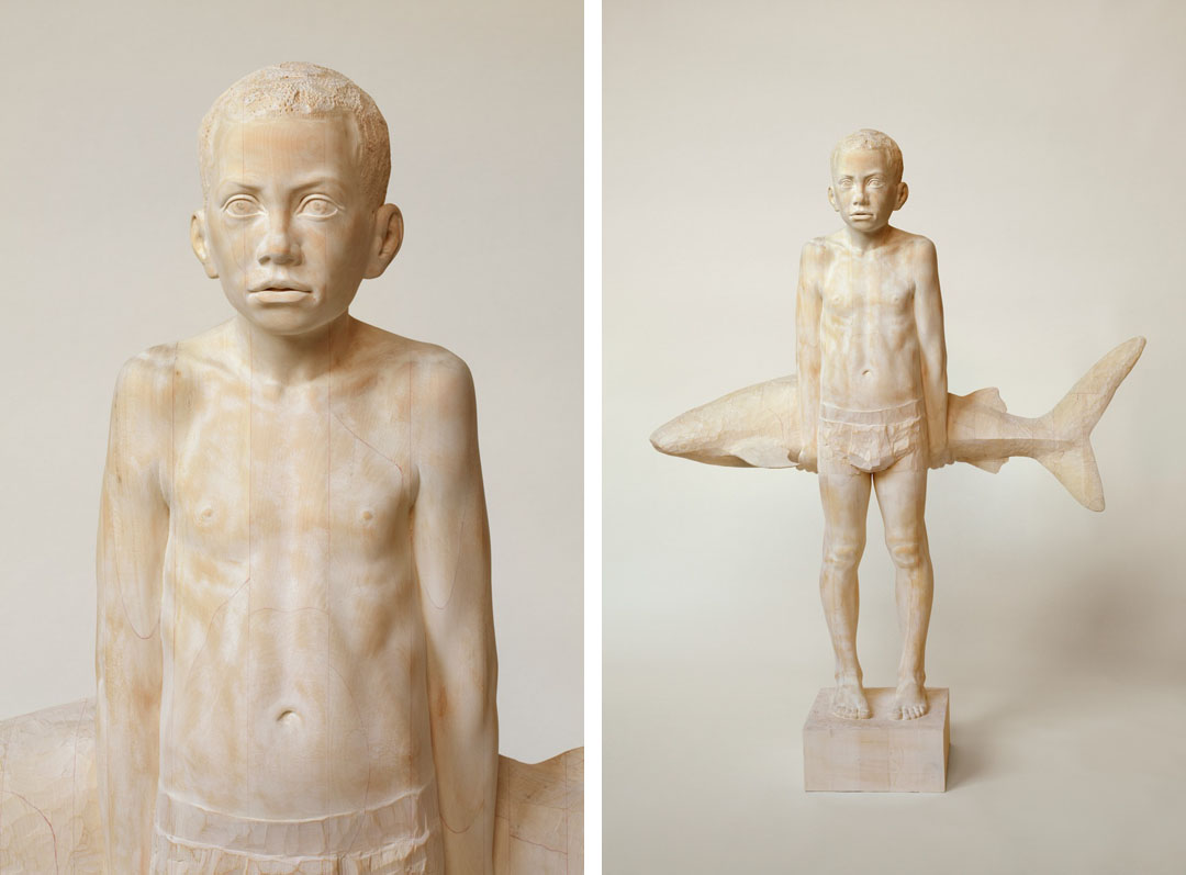 由传统雕塑的加和减,变成组构和结合,强调的是空间中的势,而不是传统雕塑着重的体积量感。平坦、光滑与中间木质部分的皱褶、粗糙形成对比反差。压力和强制力挤迫的皱褶是此件雕塑刻画的重点,而粗糙感则来自缠绕木块的绳子。